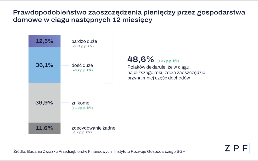 Poniższa grafika prezentuje szanse gospodarstw domowych na oszczędzanie w najbliższych 12 miesiącach.