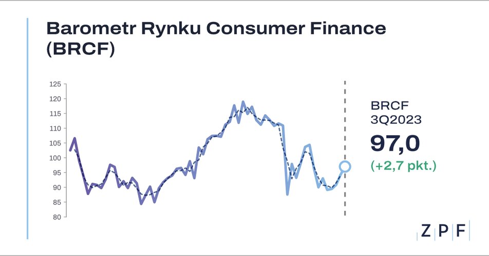 Efektem badania ZPF i IRG SGH jest Barometr Rynku Consumer Finance (BRCF). W trzecim kwartale wartość tego wskaźnika wyniosła 97 pkt. Oznacza to, że wzrósł on o 2,7 pkt. k/k. To jednocześnie czwarty kwartał z rzędu, gdy odczyty BRCF idą w górę.