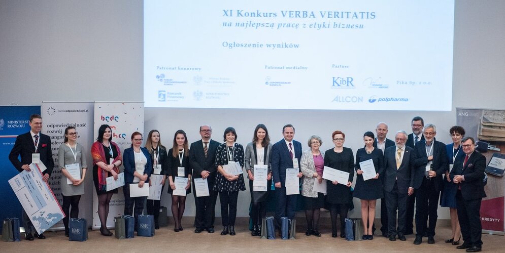 10 prac zostało w tym roku szczególnie docenionych przez Kapitułę Konkursu VERBA VERITATIS, w którym oceniane są prace magisterskie, inżynierskie, licencjackie, podyplomowe oraz doktorskie, dotyczące tematyki związanej z etyką biznesu. Ich autorom przypadły wyróżnienia bądź nagrody główne za zajęcie I lub II miejsca o łącznej wartości 10 tys. zł.